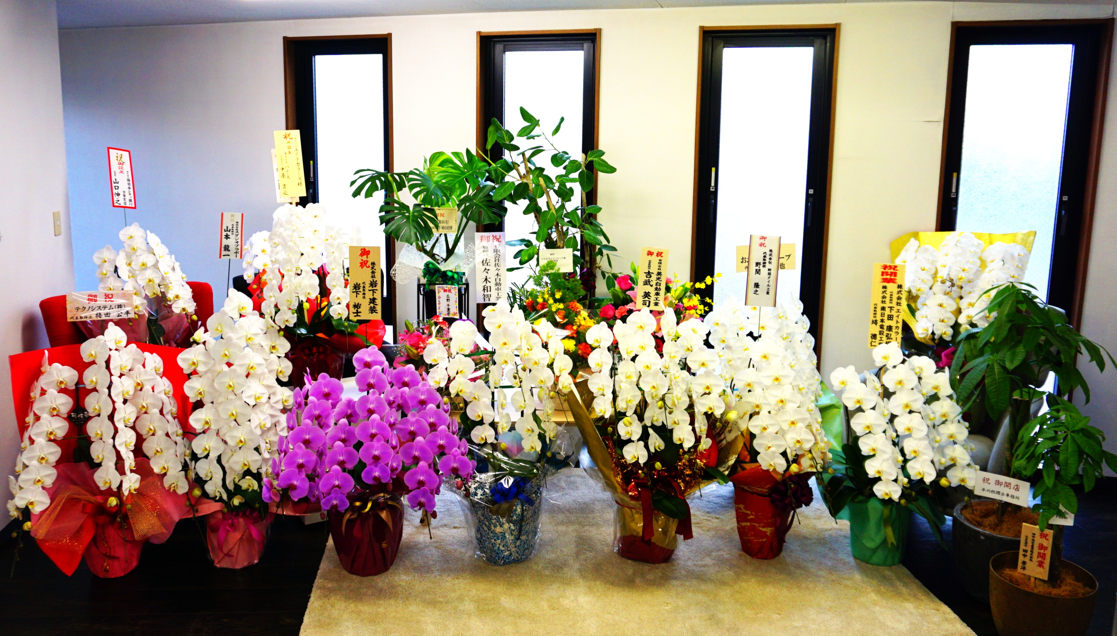 お贈りいただいたお花を飾らせて頂き、オフィスが華やかで彩り豊かな空間になりました。